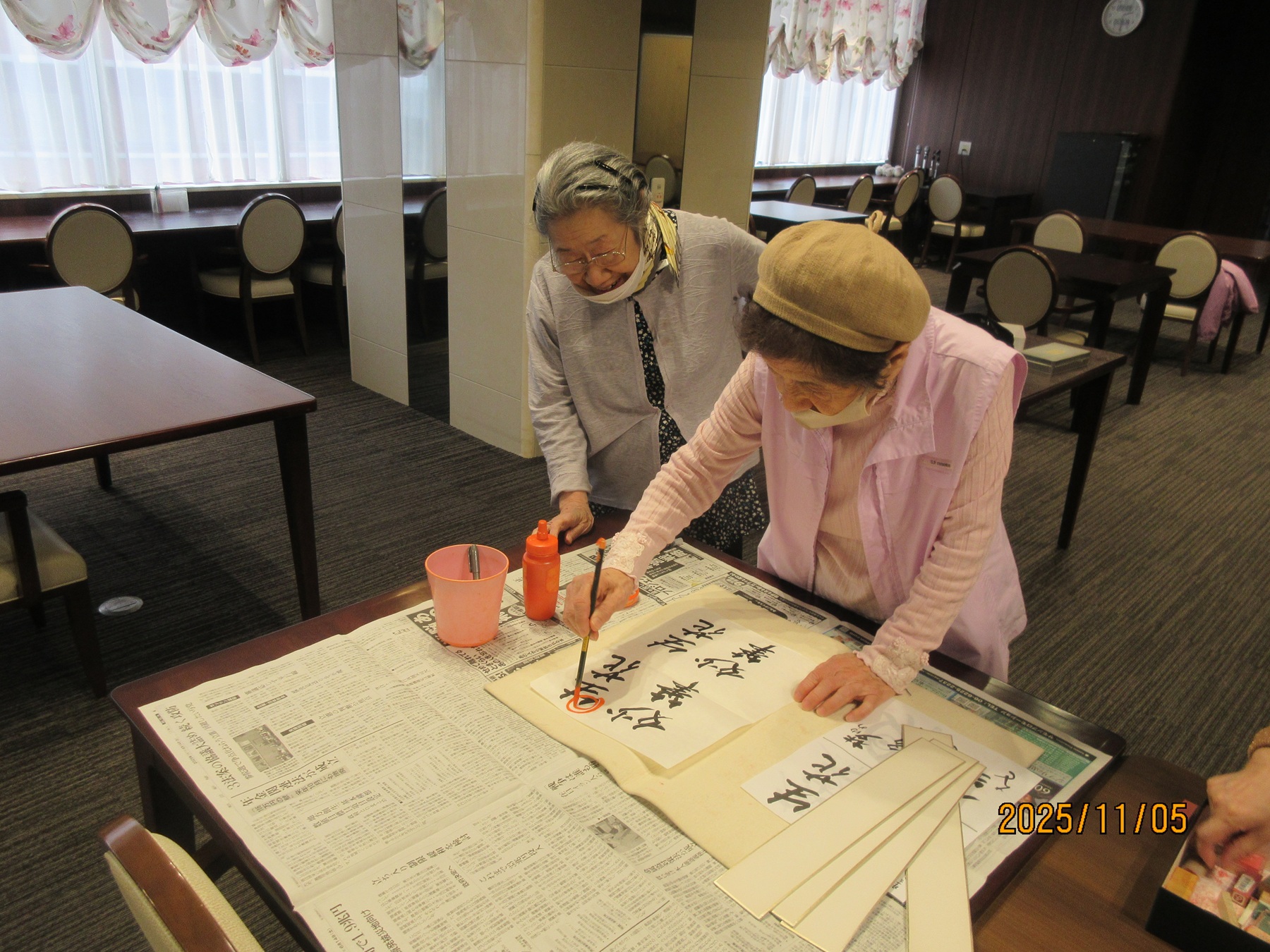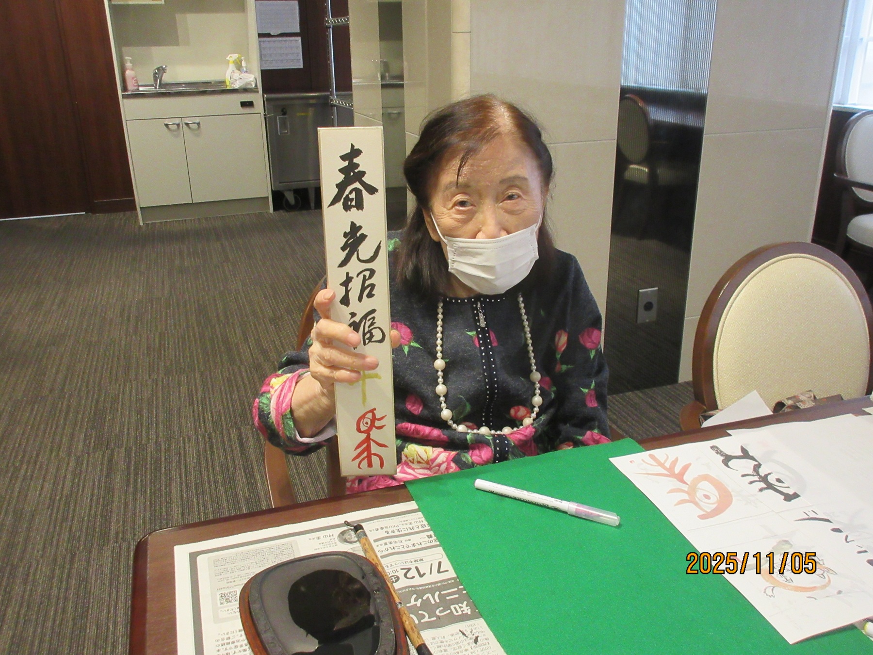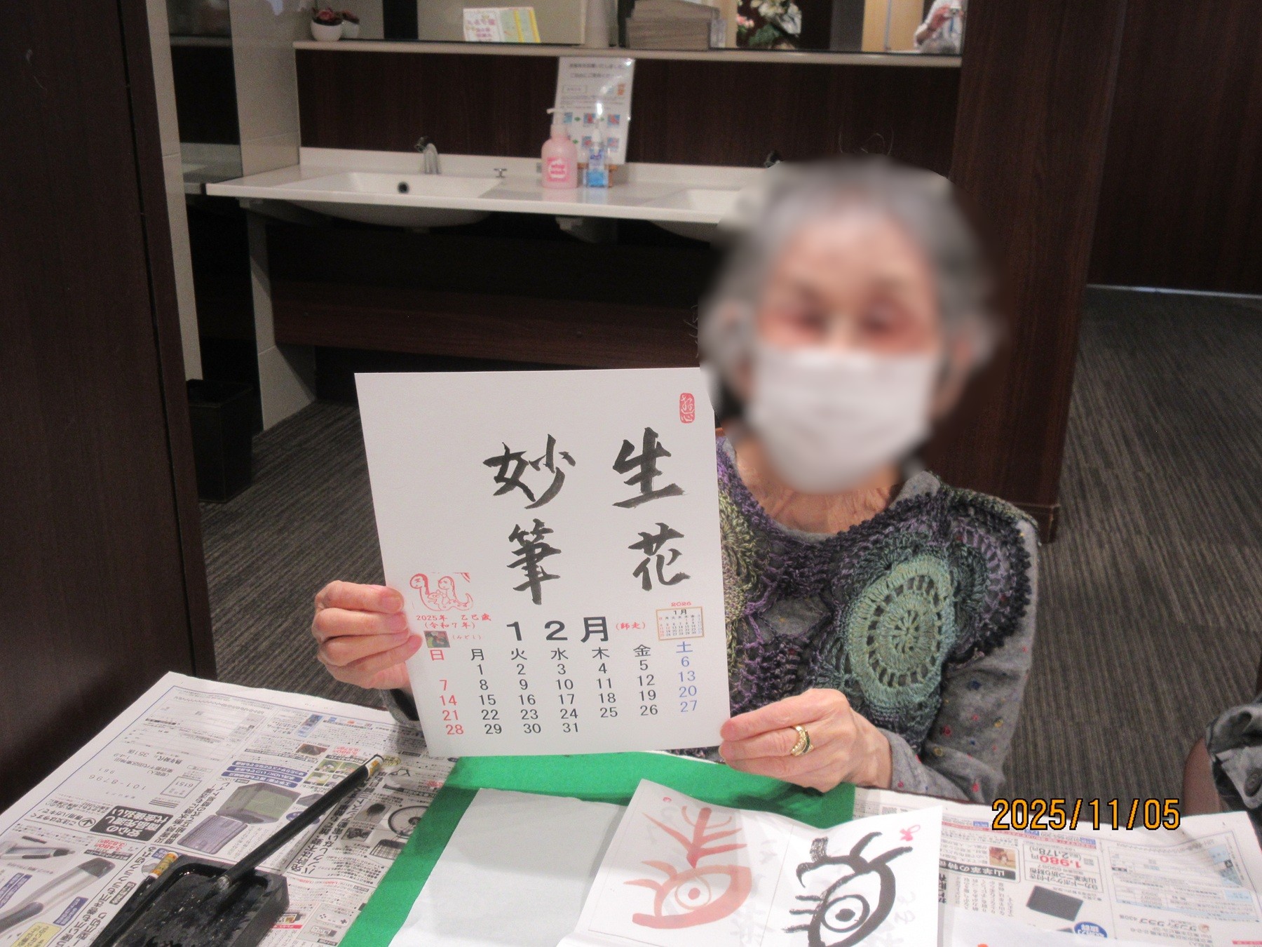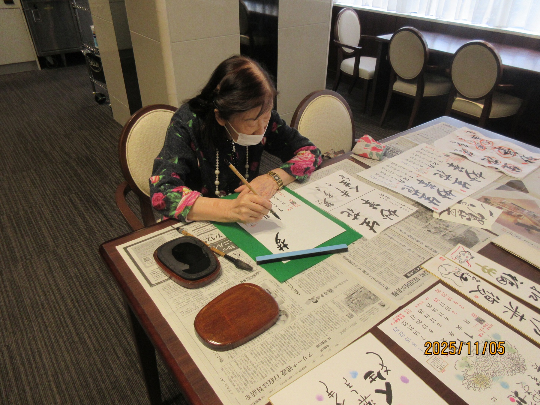 今月の習字倶楽部では、いつも書かれているカレンダーに加え